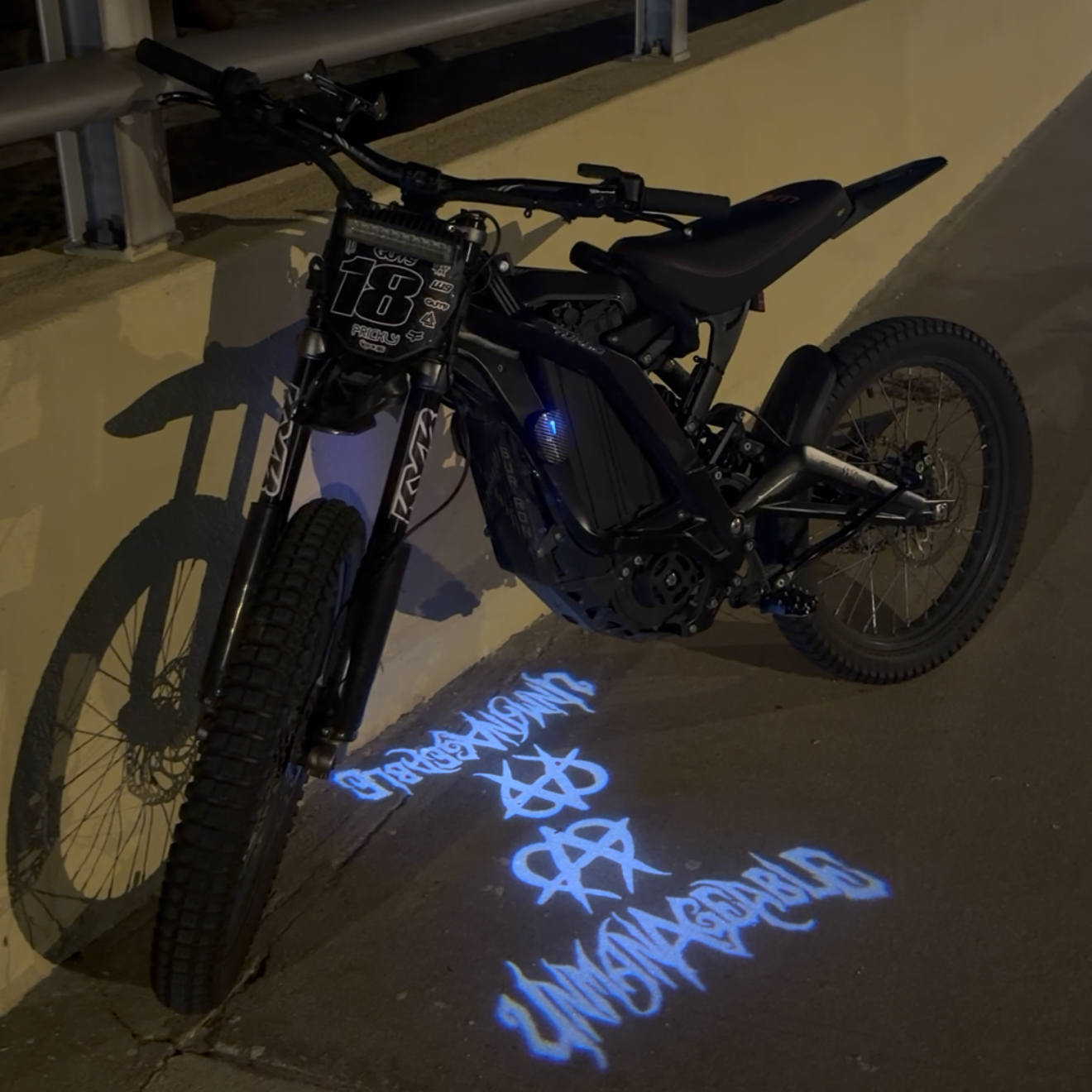 Upgrade your E-Moto with a custom surlight that shines your bike’s logo on the ground as soon as you turn it on. The bright, clear logo looks great at night and always grabs attention. Whether you’re rolling up to a meetup or just parking, the glowing logo adds a clean, eye-catching touch.
