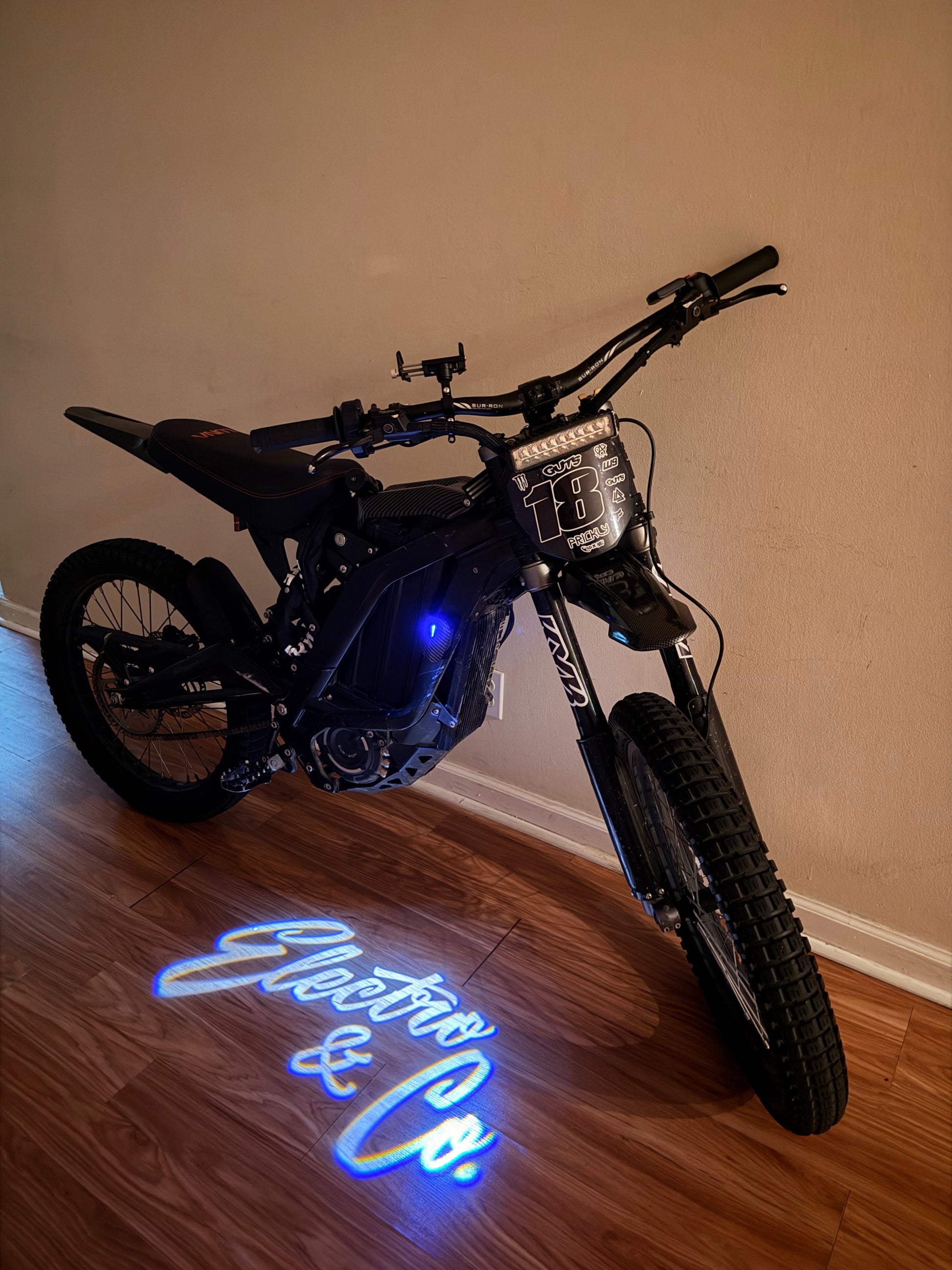 Upgrade your E-Moto with a custom surlight that shines your bike’s logo on the ground as soon as you turn it on. The bright, clear logo looks great at night and always grabs attention. Whether you’re rolling up to a meetup or just parking, the glowing logo adds a clean, eye-catching touch.